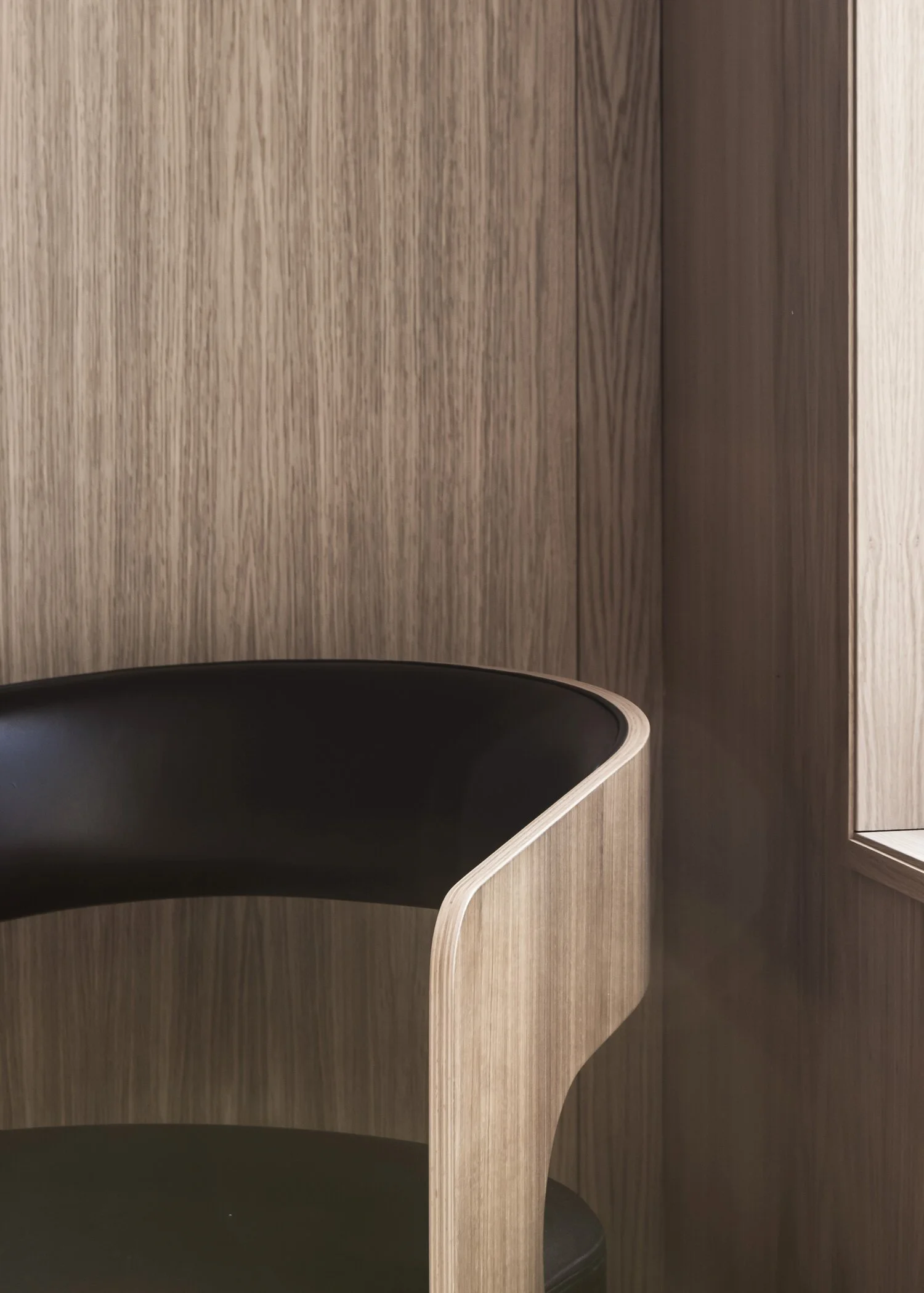 The negative space defines the chair. Lucky's memorable and distinct frame has clean lines and rounded angles. The lounge sits at a coffee table and looks at home lounging in the swanky hotel bar. The chair frame is a compressed molded wood veneer, countered with the upholstered seat and curved back detail, making the chair a sure showstopper. Lucky is offered at lounge and dining height, in various types of wood and finishes to allow for a contrasting or monochromatic frame and seat pairing. Generous in size, and artfully simplistic by design - Lucky is a looker.